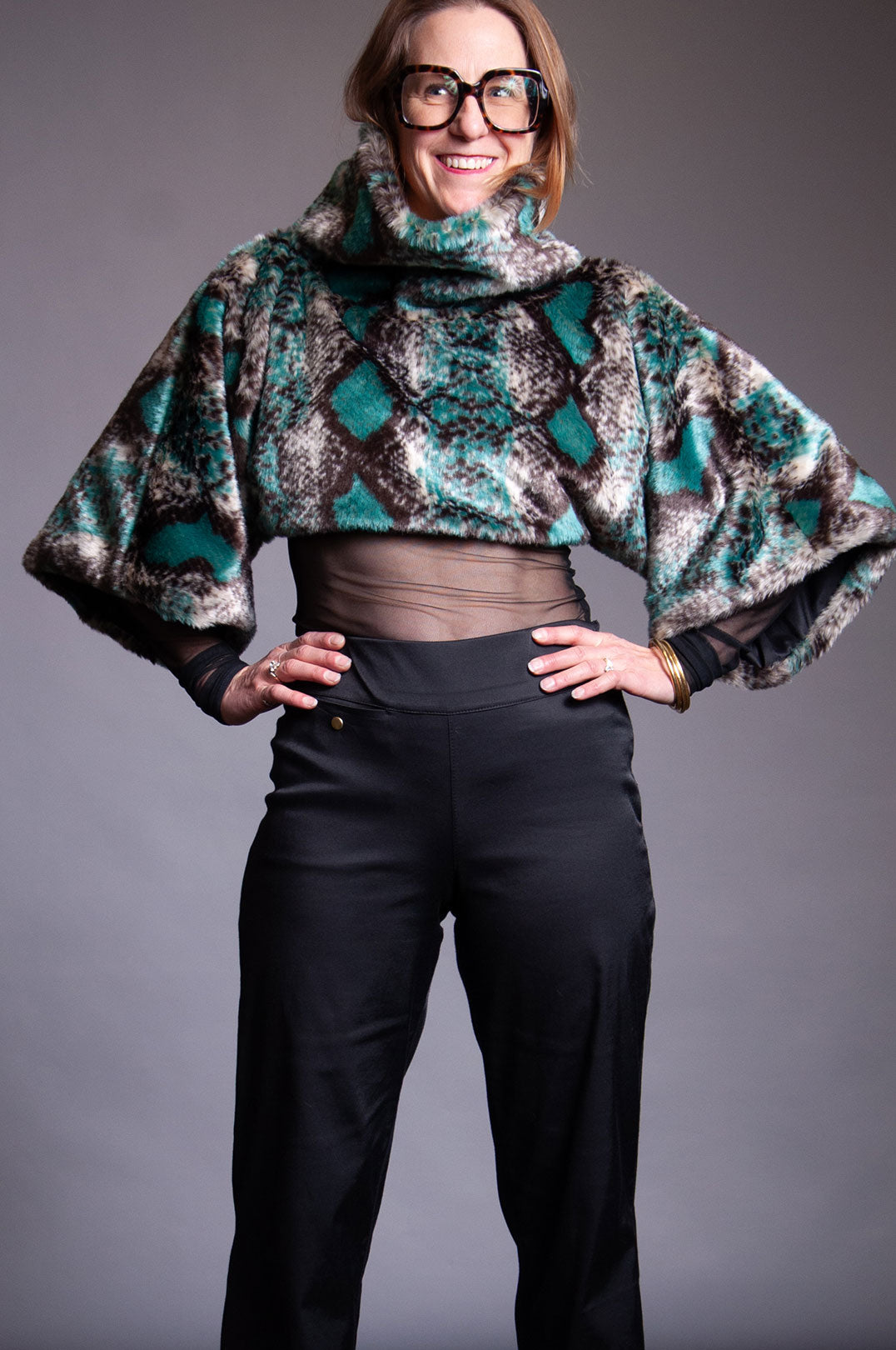 Kim Sweater - Teal Snake Faux Fur